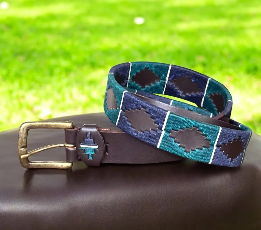Our handcrafted Argentine polo belt is a timeless accessory that combines tradition, durability, and style. Expert artisans meticulously stitch each belt using thick-cut Argentine harness leather and durable waxed thread, ensuring unmatched quality. This model features the traditional Greek Key pattern, embroidered in rich tan thread on a deep chocolate brown leather strap. Finished with a solid brass buckle, this belt is both elegant and built to last.