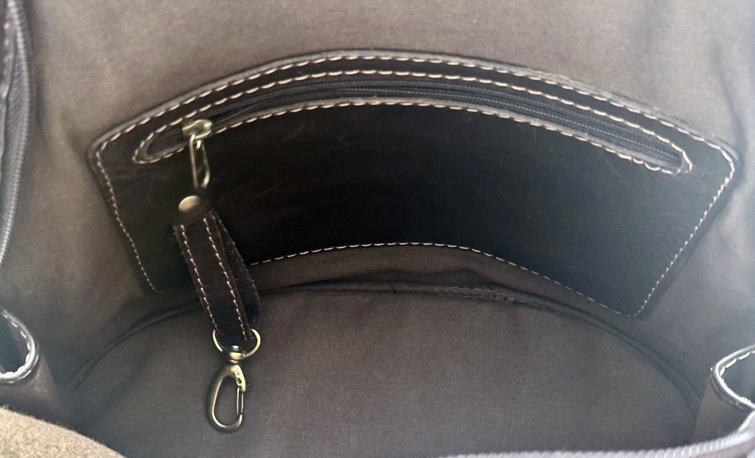 - Two wide adjustable backpack straps with solid brass buckles, to adjust to a custom fit
