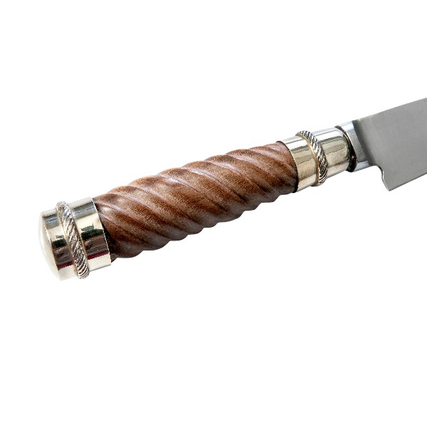 Hand Crafted, Chiseled Hardwood Gaucho Knife Handle with Alpaca Silver Accented Butt