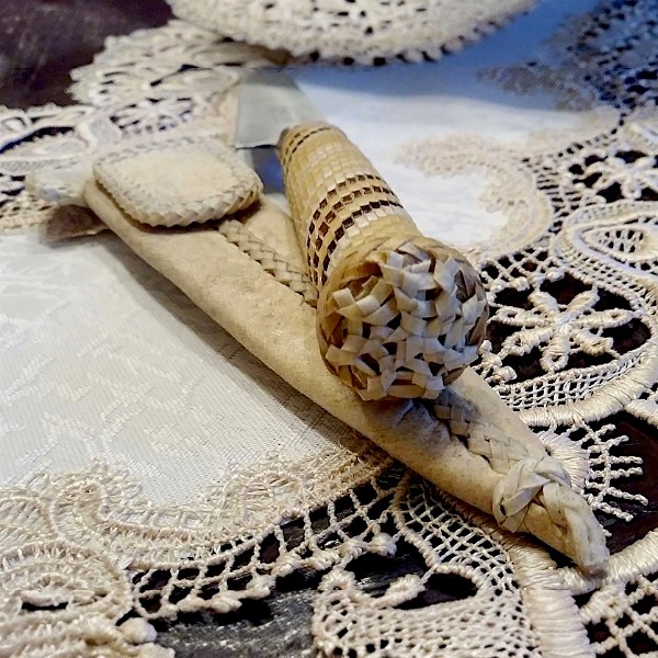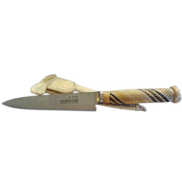 Handwoven rawhide handle with a 12 cm (4.7”) blade. Compact, precise, and shaped by rare craftsmanship.