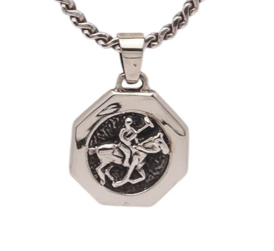 Crafted by hand in Buenos Aires, Argentina of alpaca silver. Measures approximately 3/4″ x 1″ (including its bail). A solid, nicely designed pendant, well suited for men and women alike. Also available is our MJ-DRA105 model neck chain with this polo pendant. Chain is our ‘almond’ design, measuring 3mm in thickness and 18″ in length, a well suited for length for women. Crafted of solid .925 sterling silver and accented with 18kt gold bands. Nicely finished with sterling silver safety clasp. Dropdown menu will offer either buying option.