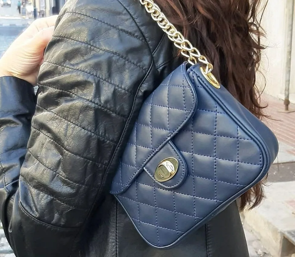 SMALL ARGENTINIAN LEATHER SHOULDER BAG PURSE – QUILTED WITH TOP STITCHING