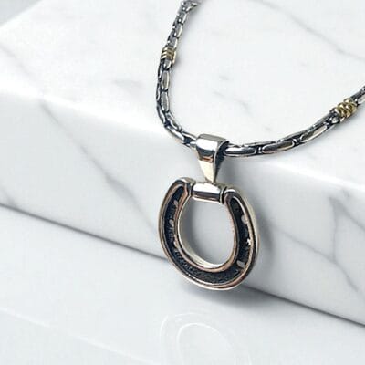 A symbol of strength and fortune. Hand-forged in 925 silver, this heirloom horseshoe pendant fuses age-old tradition with timeless style—an amulet of resilience, worn close to the heart.
