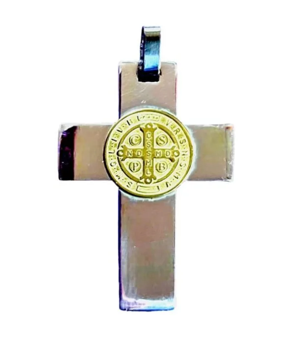 Majestic solid .925 sterling silver cross with St Benedict 18kt gold center – AU-CSB/35