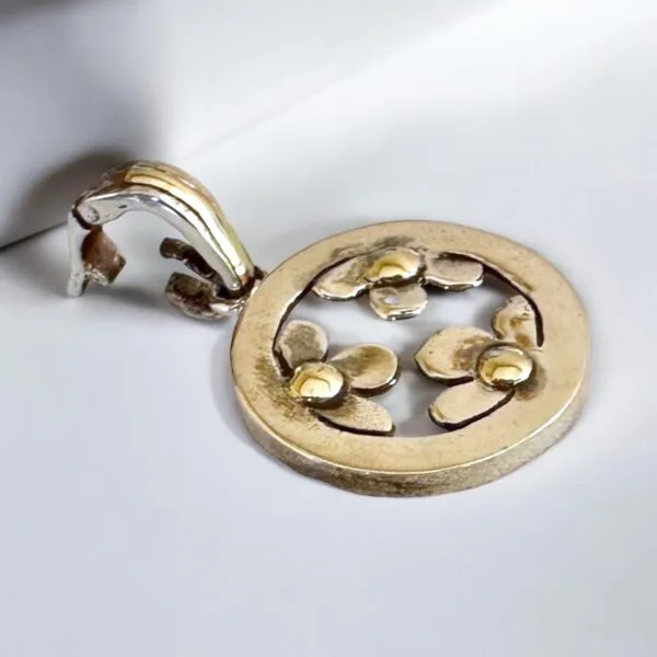Unique and Incredibly Beautiful Floral Design Pendant – Handmade of Sterling Silver and 18kt Gold