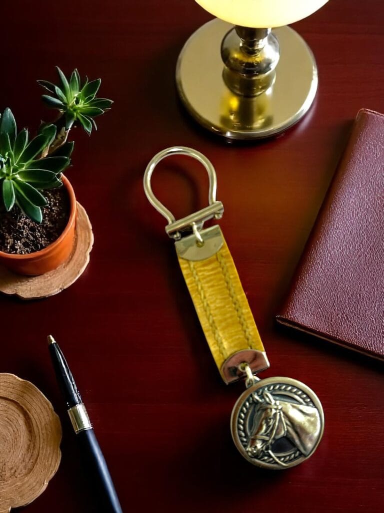 Horsehead Medallion Rawhide Leather Keychain | Handmade Equestrian Key Ring, 100% Genuine Argentinian Leather with Alpaca Silver